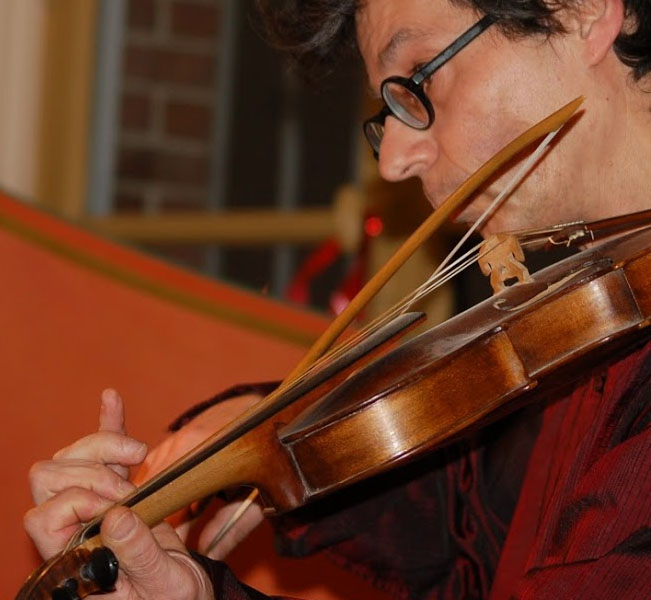 Flûtiste puis violoniste tourné vers la recherche, il voue son temps et son énergie au bricolage et aux répertoires de la Renaissance et du Baroque.