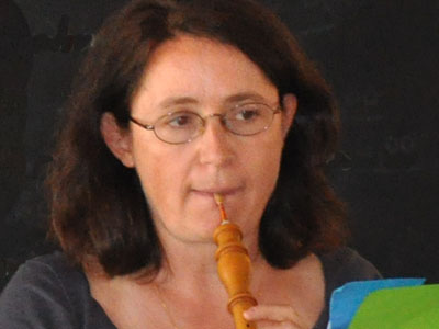 ancienne. Parallèlement à sa vie d'enseignante en biologie, elle étudie la flûte traversière baroque auprès dePhilippe Suzanne puis Annie Laflamme et découvre l'art de la déclamation et la mise en scène baroques avec Michel Verschaeve. Elle se perfectionne en flûte auprès deDelphine Leroy puis Sophie Ardiet, et obtient un CEM au conservatoire de Mantes-la-Jolie. Présidente de l'association,