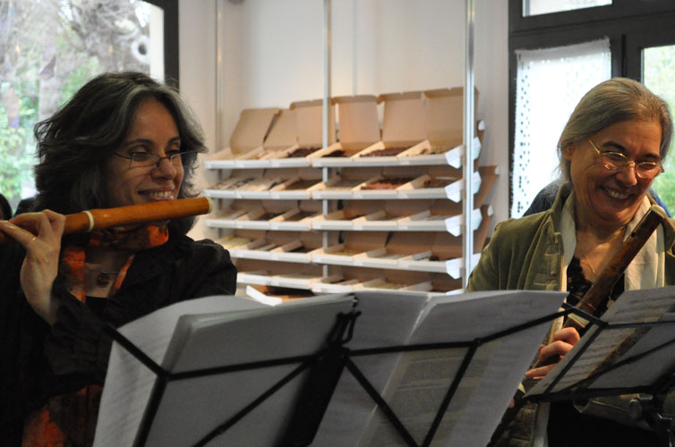 Le 2 mars 2013, les effluves de chocolat accompagnaient l'ensemble dans une nouvelle promenade dans l'Europe des 17ème et 18ème siècles au cours de laquelle vous avez pu entendre des pièces pour 1 et 2 flûtes et clavecin de CPE Bach, Dandrieu, Dornel, Kirnberger, Marin Marais et Telemann.... mêlées à quelques fables de La Fontaine