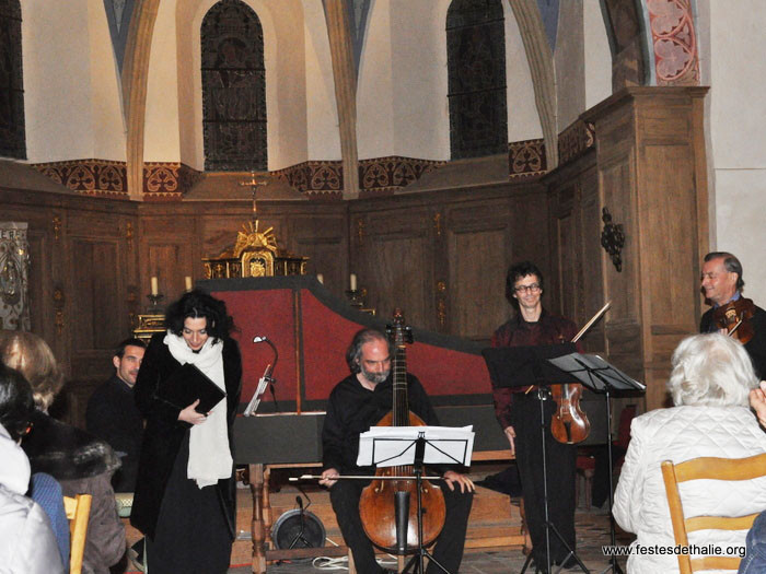 Oeuvres instrumentales et vocales de Telemann, Marais, Nicolai, Ariosti, Bononcini, JC Bach sur instruments d'époque ou leurs copies.
